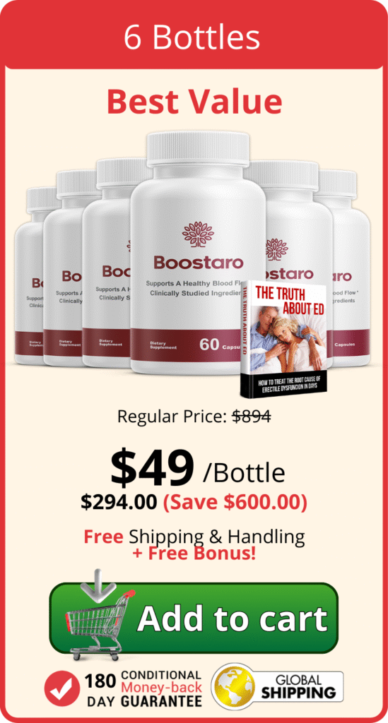 Boostaro is a supplement specifically formulated to support erection strength, penis enlargement, and overall sexual performance. Its advanced formula is backed by research and combines scientifically proven ingredients that help enhance blood flow, boost testosterone levels, and promote lasting sexual health.